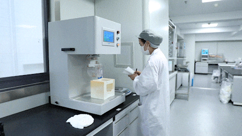 每一批尿裤成品生产出来,都必须经过严格的质量检测,在实验室中就要做足足 16 个项目,只要有一个项目不合格,都得回炉重造。