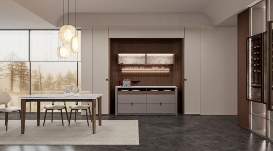 作为中国家居行业的领军品牌,顾家家居在2025年展现出全方位的系统竞争力。其整家定制两大全新系列「观澜」与「无界生活」以突破性的设计理念在2025德国iF设计奖评选中齐折桂,成为本年度同时斩获两项iF奖的中国家居品牌。「观澜」系列以东方美学为原点,将榫卯结构、竹编艺术、敦煌色彩与现代设计语言相融合,通过宋韵团扇拉手、芙蓉装饰柱等细节,实现传统工艺的数字化转译。